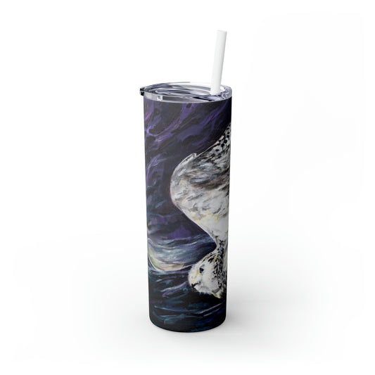 Aurora Snowy Owl under the Northern Lights Skinny Tumbler with Straw, 20oz