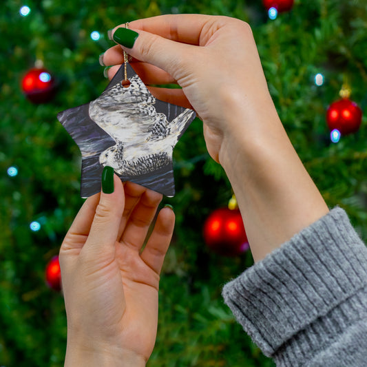 Aurora Snowy Owl under the Northern Lights Ceramic Ornament, 4 Shapes