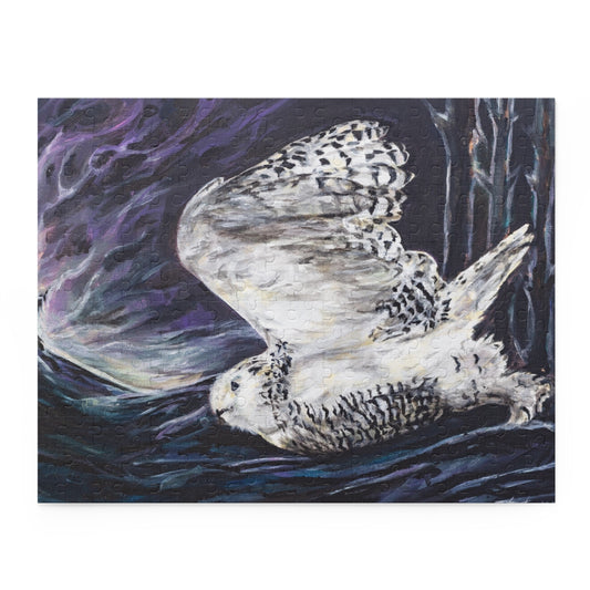 Aurora Snowy Owl under the Northern Lights Puzzle (120, 252, 500-Piece)